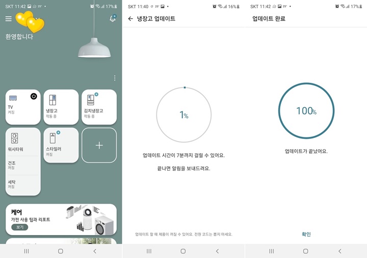 삼성 스마트싱스만 깔아두고 활용하고 있었는데, 진작에 엘지 씽큐 앱도 깔아 둘 걸 그랬나 보다. 그나저나 요즘 가전 정말 예쁘고도 스마트하다:D
