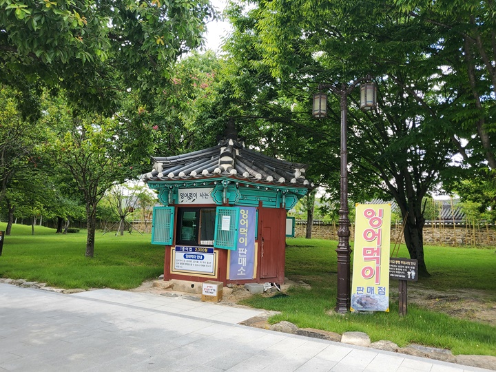 남원 광한루원 관람시간 예촌문을 지나면 바로 표 사는 곳이 보인다. 남원예촌 숙박객은 광한루원, 춘향 테마파크 등 무료입장이 가능하여 마패를 제시하고 무료입장권을 받았다.