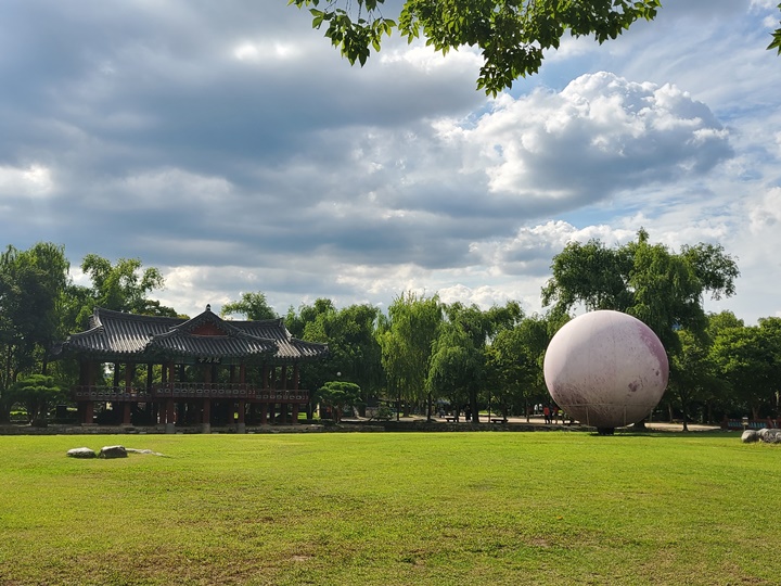 1971년 5월 21일 조성되어 1963년 채기묵 남원군수의 재임(1962년 4월 5일~1963년 5월 31일) 당시부터 연차 계획을 세워 경내를 확장하고 주변을 정화하는 과정에서 증설된 건물이다. 달 구조물이 왜 있나 했더니 이런 깊은 뜻이... 밤에 보면 더 예쁠 것 같아서 다음날 저녁 시간대에 다시금 광한루원에 들렀다.