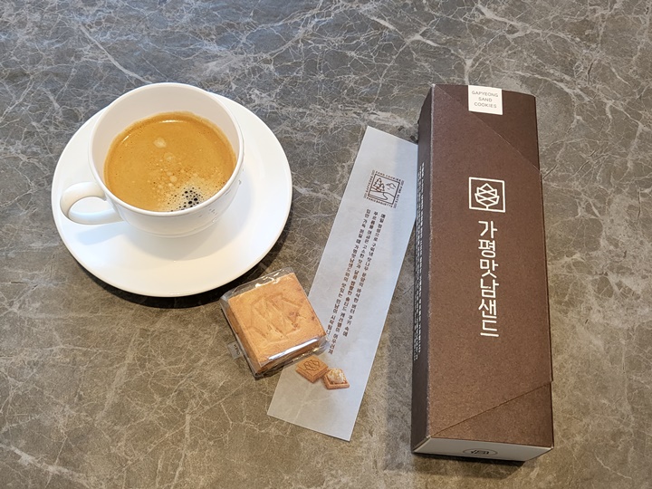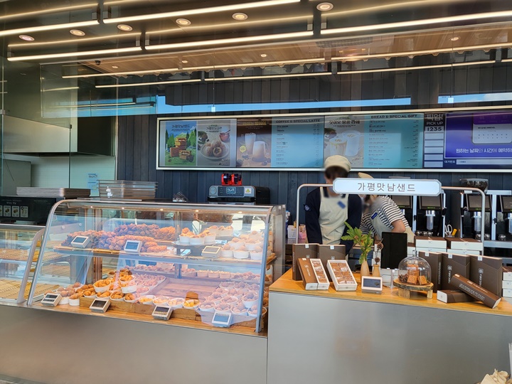 5개입 가평맛남샌드 (소) 가격은 7,000원이고 주문은 키오스크에서 하면 된다. 가평맛남샌드만 구입할 수 있는 전용 키오스크도 있었으니 인기가 대단한 모양이다. 실제로 먹어보니 맛도 좋고, 선물하기에 가격, 포장, 맛 모두 부담스럽지 않아서 선물용으로 여러 세트 구입하는 손님들도 있었다.