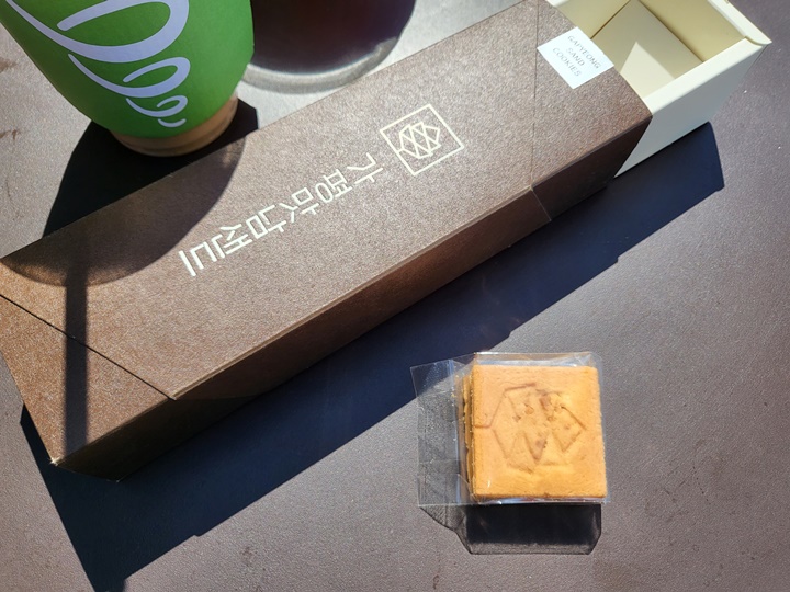하나씩 개별포장되어 있고, 잣 무늬가 찍힌 버터쿠키가 내용물을 앞뒤로 감싸고 있다. 쿠키는 부드럽고 솔티드 캐러멜은 단짠의 정석이다.