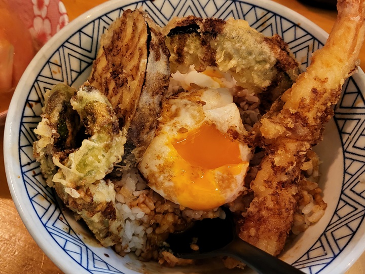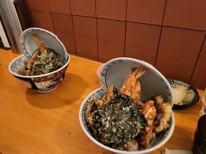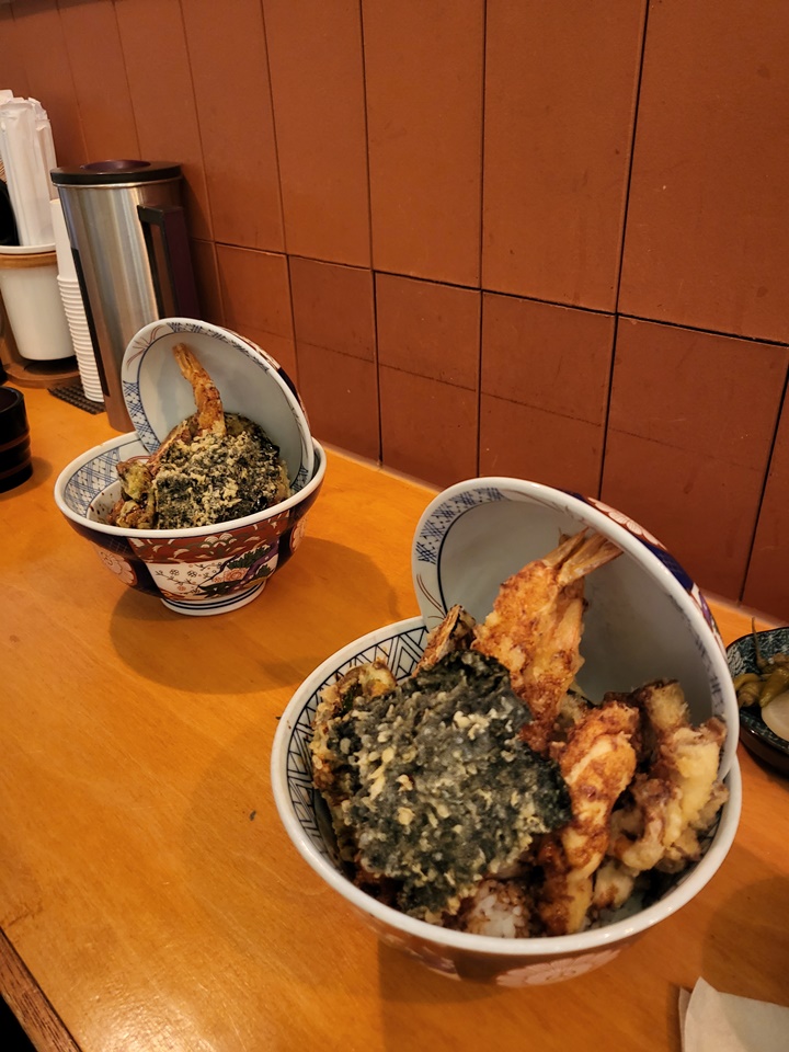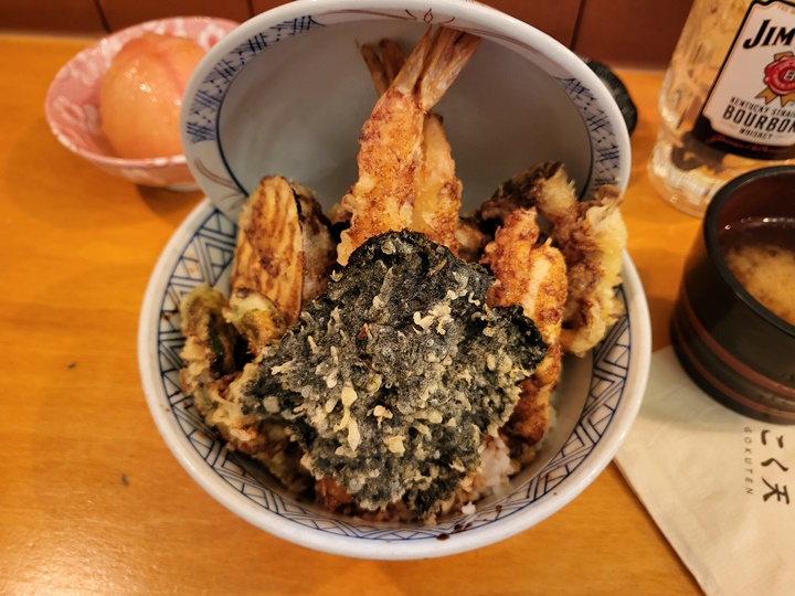 밥과 장국은 무료로 추가 가능하다. 밥에 튀김을 얹어 먹는 메뉴라 느끼할 수 있으므로 취향에 따라 초생강이나 고추냉이를 부탁드려도 된다. 먹어보니 튀김류가 많아서 좀 느끼한가 싶다가도 단무지와 장국, 꽈리고추 튀김으로 굳이 와사비 없이도 한 그릇 순삭!