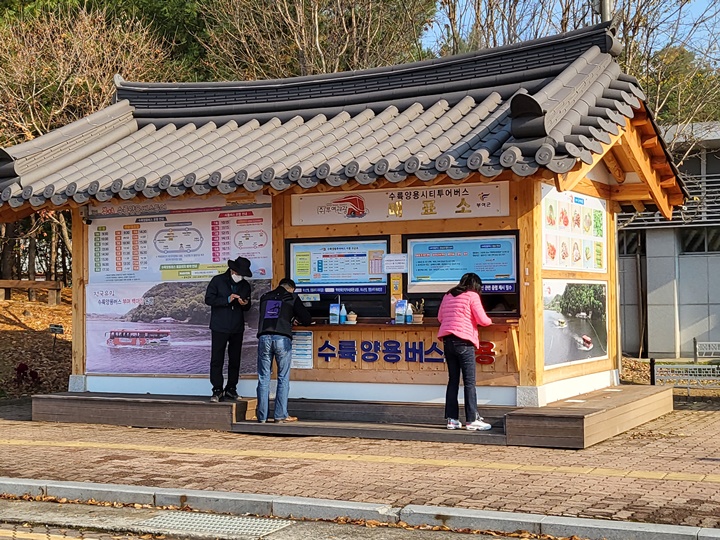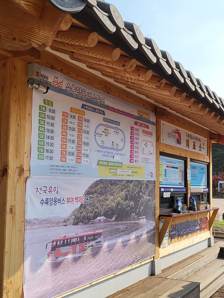 아이가 저거 타보고 싶다고 난리난리~ 백화정 근처에서 좀전에 수륙양용버스 타고 오신 어르신을 만났는데, 가격이 비싸기는 하지만 꼭 타보라며 강력 추천하신다. 타보면 비싸다는 생각도 싹 사라진다면서 ㅎㅎㅎ 하지만 우리가 1박 2일 부여 여행을 한 기간은 10월 31일~ 11월 1일로 일~월 여행이었다. 이미 일요일 운행은 마감이었고, 월요일에는 부여 백마강 수륙양용버스 투어 운행을 하지 않으므로 아쉽게도 나중을 기약해야 했다.