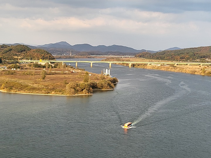 그런데 아이가... '강 위에 버스가 있다'고 그런다. 아이가 종종 엉뚱한 말을 해서 이번에도 그런가 보다~ 하고 넘겼는데 진짜 버스가 백마강 위를 달리고 있었다 띠용~