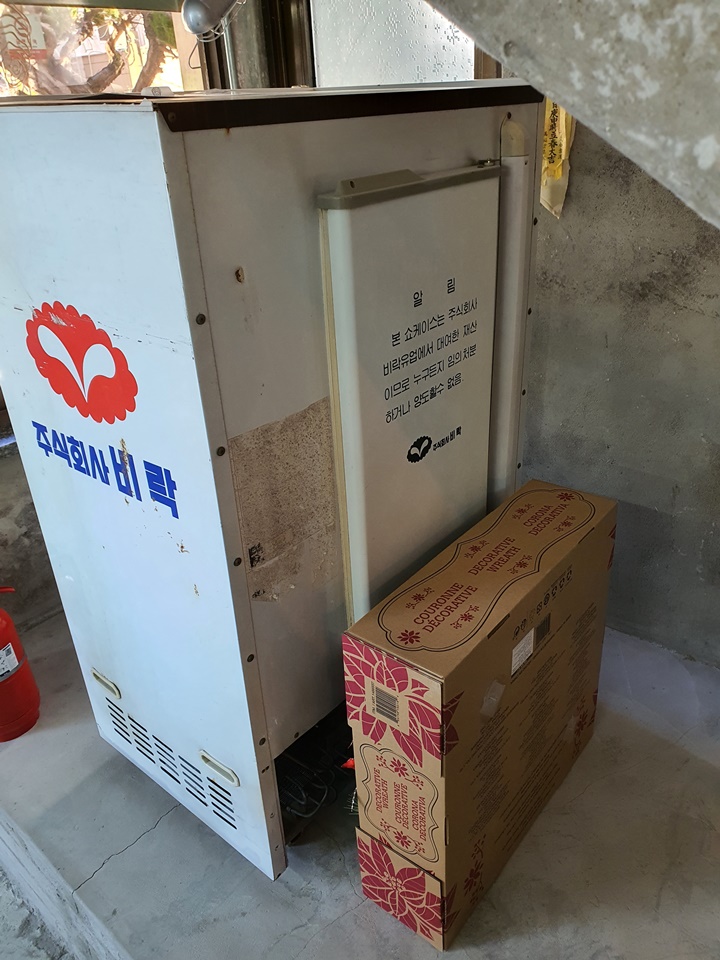 1층 매장 초입에 전시된 비락우유 냉장고 ㅎㄷㄷ 시대가 바뀌고 업종도 변경하였지만, 예전 목욕탕에서 사용하던 소품을 적재적소에 두어 방문객의 호기심을 자극한다.