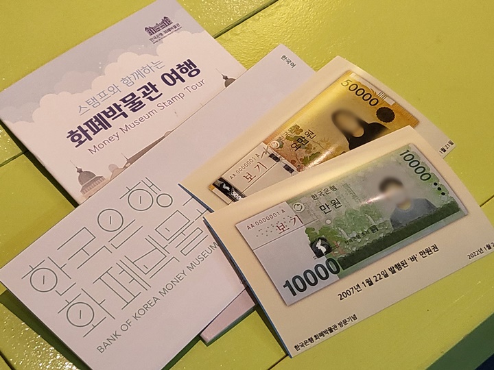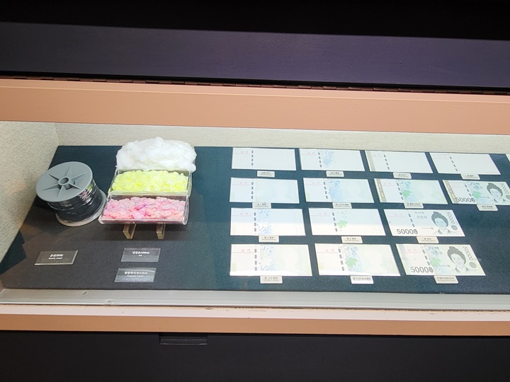 새로운 지폐 발행시 집권한 대통령의 친필사인본 지폐도 종류별로 진열되어 있어서 신기했다. 5만 원권 나온 게 얼마 되지 않은 거 같은데 2009년에 발행된 거였다니 ㅎㄷㄷ