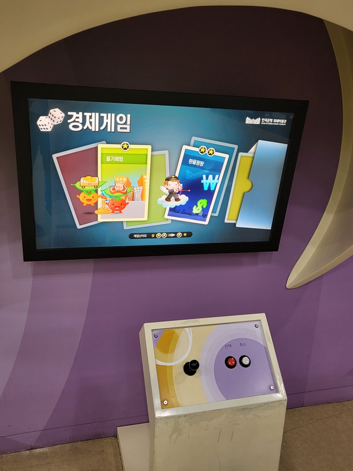 돈과 나라경제는 영상을 보고 각종 게임을 해볼 수 있는 공간으로 꾸며져 있어서 아이들에게 특히 인기가 많았다. 게임조작 전후에는 손세정제를 사용하라고 근처에 손세정제도 비치되어 있다.