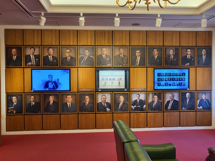 옛 총재실 역대 한국은행 총재의 사진과 약력이 차례대로 전시되어 있다.