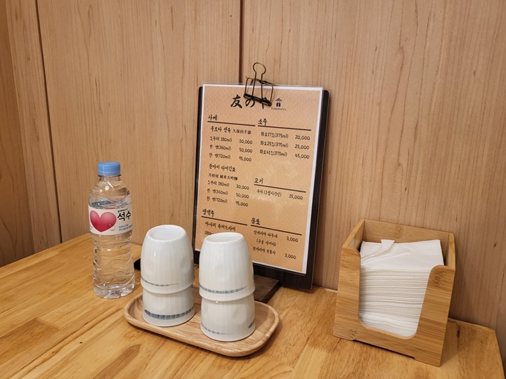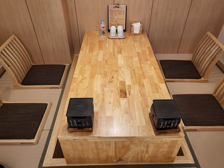 좌석배치는 약간 다르지만 전체적으로 거제 토모노야 고치소와 대동소이하다. 석식은 개인화로구이에 일본 가정식 조식이 제공되는데 메뉴 또한 큰 차이가 없다.