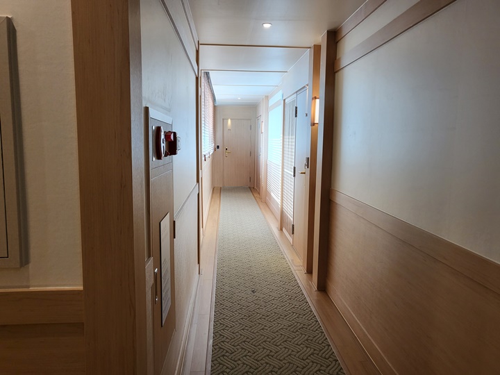 우리는 높은 층에 속하는 7층 703호에 배정되었다. 한층에 객실은 총 4개로 다다미 디럭스 더블 2실, 다다미 스위트 더블 2실씩 배치되어 있는 모양이다. 복도는 좁지만 깔끔하고 멋스러운데... 나중에 오며 가다가 복도 창문 쪽으로 묘지가 보이는 것을 발견했다. 복도에서만 보여서 크게 신경 쓰지는 않았지만, 객실에서도 보인다면 많이 신경 쓰일 듯...