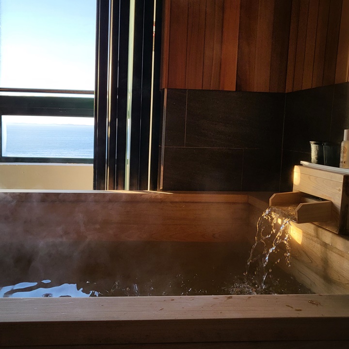 서해바다 바라보면서 히노끼탕을 즐길 수 있다니 시각적으로도 백점 만점!! 히노끼욕조는 관리가 어려운 편이라 히노끼탕 있는 호텔 다녀봐도 관리상태가 양호하지 않은 경우가 많다. 특히 외부 입욕제 절대 사용하면 안 되기 때문에 대천 토모노야 료칸에서 제공하는 (객실내 비치) 히말라야 허브 솔트 입욕제만 사용해야 하며 다른 입욕제 사용 시 욕조 클리닝 비용이 청구된다고 하니 조심조심~