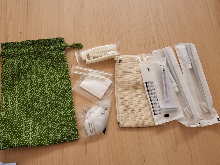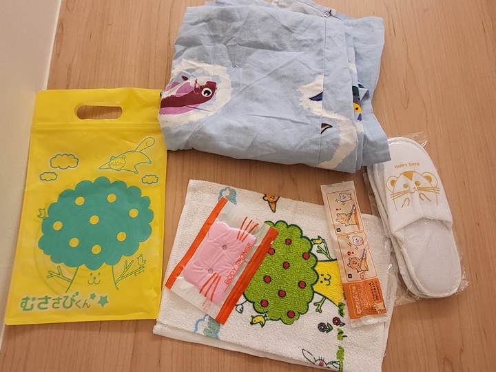 일회용 어메니티도 제공되는데 왼쪽은 어린이용, 오른쪽은 어른용... 일본 여행 가면 호텔에서 사용했을 법한 구성으로 가족탕 즐길 때 필요한 것들은 다 들어있다.