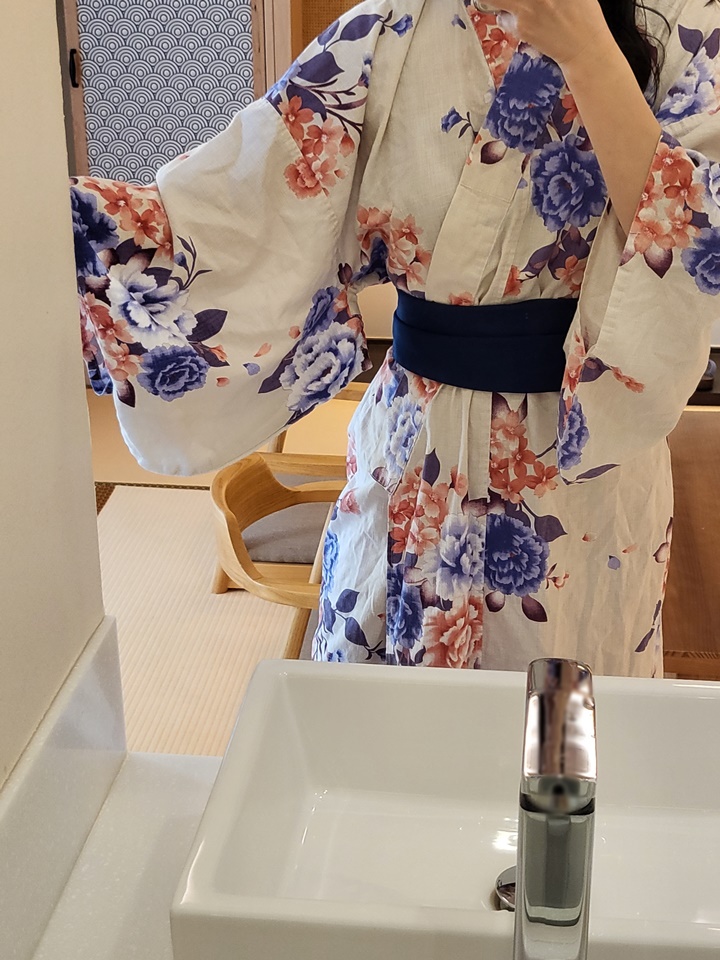 날이 좀 따뜻했다면 유카타 입고 대천 토모노야 곳곳에서 사진 찍으면 더없이 좋았을 텐데, 꽤 추운 날씨라 객실 내에서만 입고 사진 몇 장 찍으면서 기분도 내 보았다.
