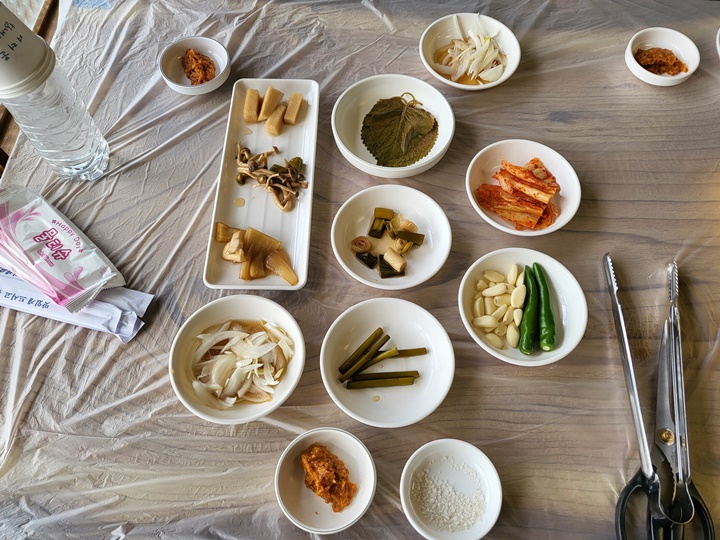 삼겹살을 못 먹는 사람이 있어서 고민 끝에 주문을 마쳤다. 주문하자마자 반찬부터 준비되는데 담음새가 정갈하다. 돼지고기, 오리, 김치, 쌀, 장아찌 할 것 없이 모든 식재료는 국내산이라고 한다. 특히 장아찌가 맛있었고, 김치도 나중에 삼겹살 기름에 구워 먹으면 굳이 설명 안 해도 될 맛있는 맛이다 :)