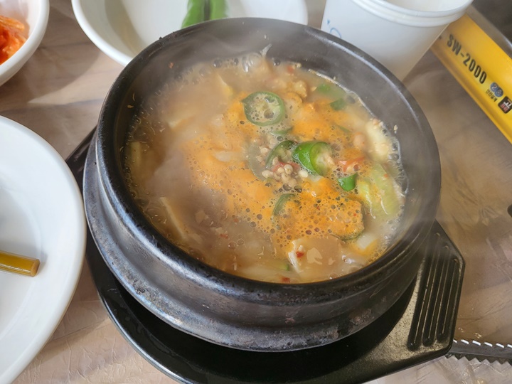 내 취향은 미더덕이 들어가 시원한 된장찌개. 미나리 비빔밥 주문하면 된장찌개 포함해서 7,000원이라 그걸 주문하고 싶었지만, 비빔밥까지 먹으면 배가 터질 것 같아서 개운하게 된장찌개만~