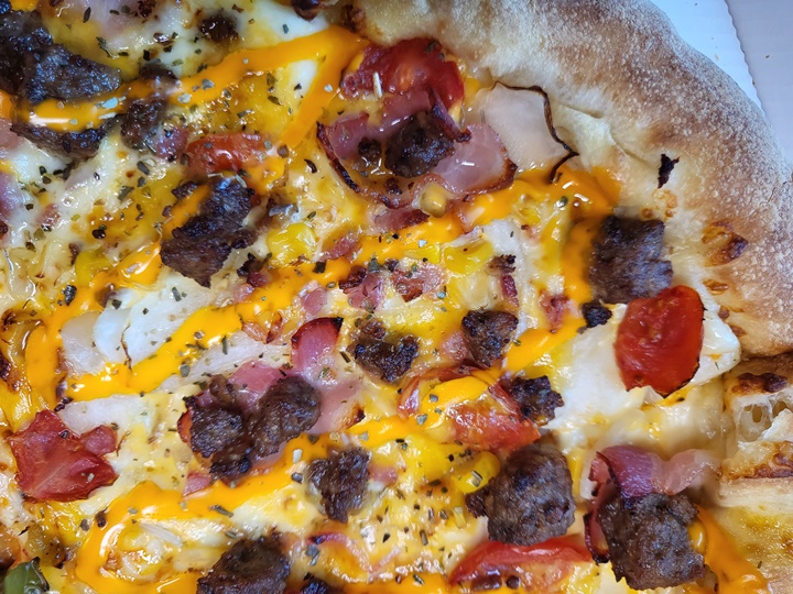 여튼 아메리칸 패티 멜트 피자는 그릴드 직화 패티와 부드럽게 녹는 4가지 치즈가 조화를 이루는 피자로 베이스 소스는 사우전드 아일랜드 소스에 스모키 머스터드를 더했다. 하프앤하프로 아메리칸 패트멜트+블랙앵거스 스테이크 더블 치즈 엣지 피자 (L 36,900 M28,500)와 아메리칸 패티멜트 뉴욕 오리진 더블 치즈 엣지 피자(L33,900 M25,000)로 선택할 수도 있다.