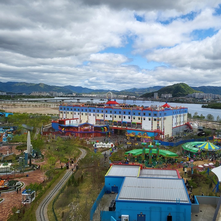 LEGOLAND® 전망대 드래곤 코스터를 탑승한 후에는 대기시간과 이동거리를 고려해서 어트랙션을 선택했다. 다음에 선택한 것은 역시 인기있는 것 중 하나인 레고랜드 전망대이다. 춘천 레고랜드 리조트를 한눈에 내려다 볼 수 있다. 익사익팅한 재미는 없지만 한번쯤 타보면 좋다. 대기하는 동안에 레고판이 곳곳에 설치되어 있어서 아이들이 레고를 하면서 기다릴 수 있게 배려해 둔 점도 마음에 든다.