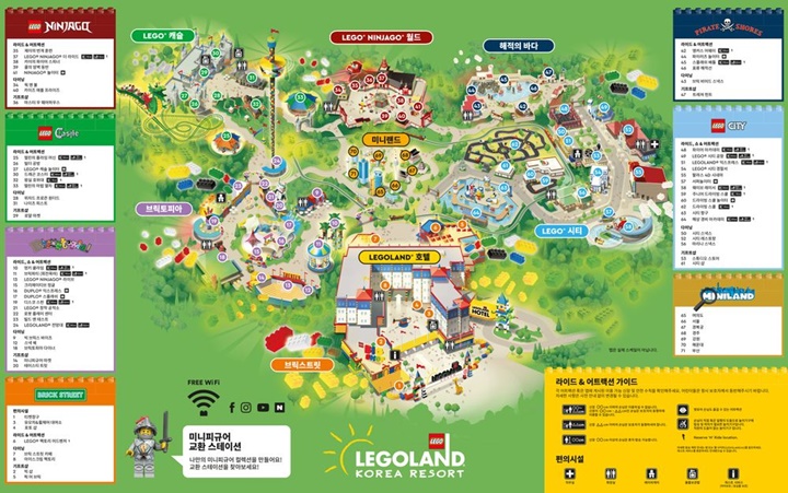 어플리케이션으로 레고월드 맵을 확인할 수 있지만, 폰으로 보는 게 불편하다면 레고랜드 내에 비치된 리조트 가이드를 참고하면 된다. 아이는 폰보다 지도를 직접 보는 것을 더 선호해서 계속 들고 다니면서 라이트, 어트랙션을 결정하곤 했다.