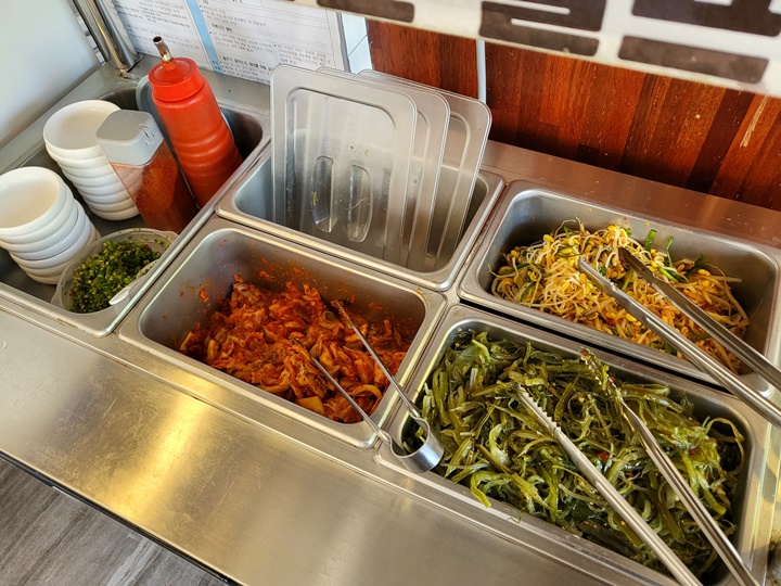 반찬은 셀프로 셀프바에서 필요한 만큼 담아 먹으면 된다. 여러 정돈된 상태로 보아 주인분이 엄청 깔끔한 성격인 것으로 생각된다.