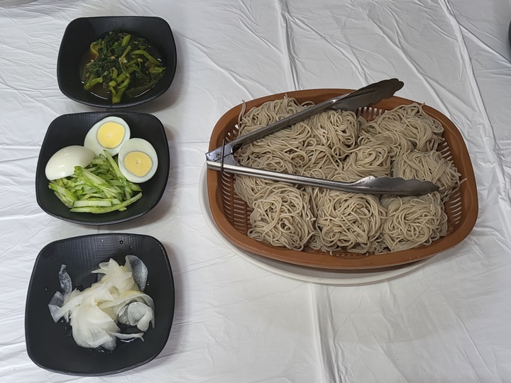 3. 물막국수가 좋다면, 시원한 야채육수에 식초, 설탕, 겨자를 더해 먹는다.