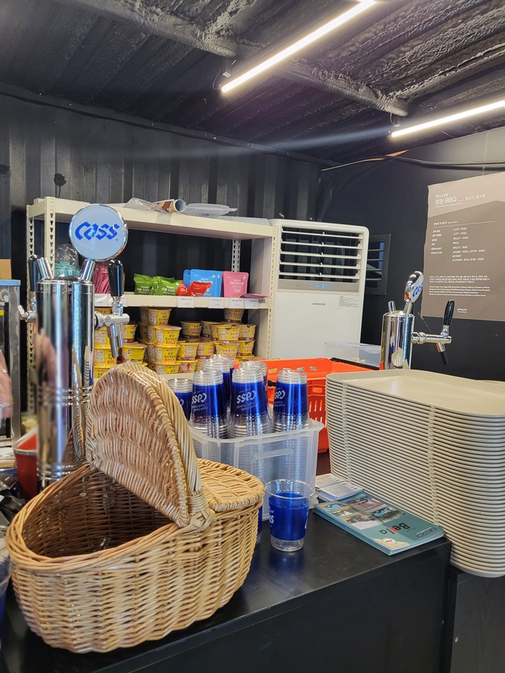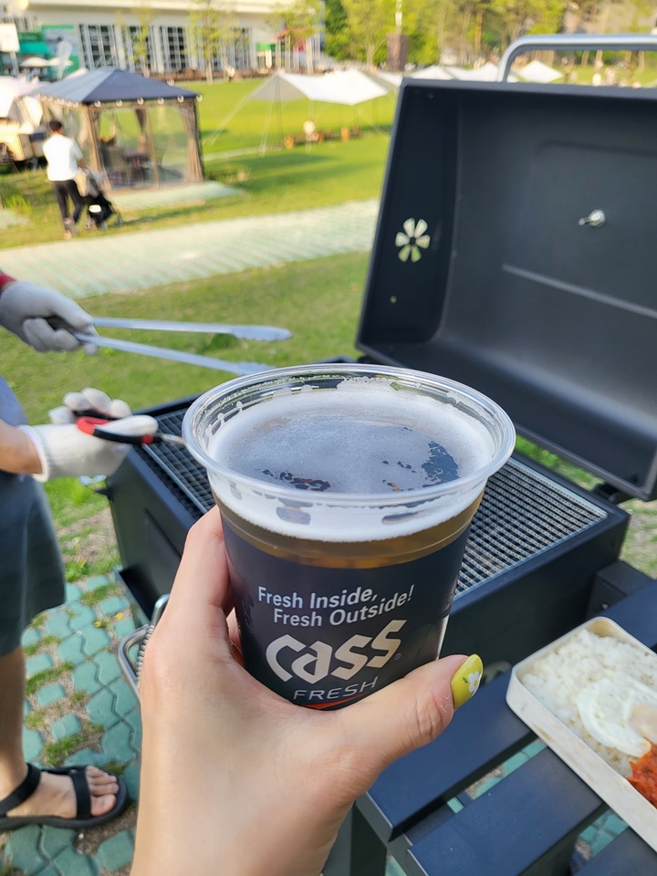 포레스트 캠핑 BBQ 내 외부음식은 반입이 제한되므로 객실 냉장고에 사다둔 맥주 가지고 올 걸.. 이런 거 노노~ 그리고 생맥이라서 캔맥보다는 이게 훨씬 맛있다.