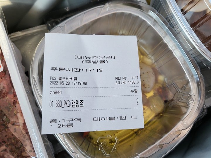 생맥주 사러 갈 때마다 생맥주 무제한 아니었냐고 물어보는 이용객 만나곤 했는데 작년에 이용했을 때는 라면, 생맥주 무제한이었지만, 이번 포레스트 캠핑 BBQ 이용 특전은 라면만 무제한(와인 1병 제공)이고 생맥주는 유료, 1잔에 3,000원이다. 담당 직원분이 계속 같은 말씀 반복하시는 모습이 피로해 보였다.
