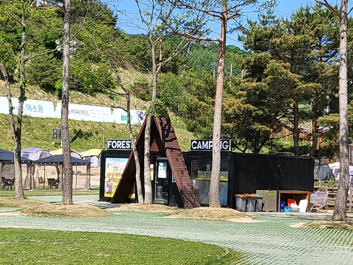 작년에 포레스트 캠핑 bbq 이용했을 때는 위치가 청기단이어서 블루동에서 셔틀버스를 타고 이동했다. 이번에는 자차로 이동해야지, 생각했는데... 두둥- 야외 바비큐 위치가 바뀌었단다!! 바로 포레스트파크 잔디광장이다.