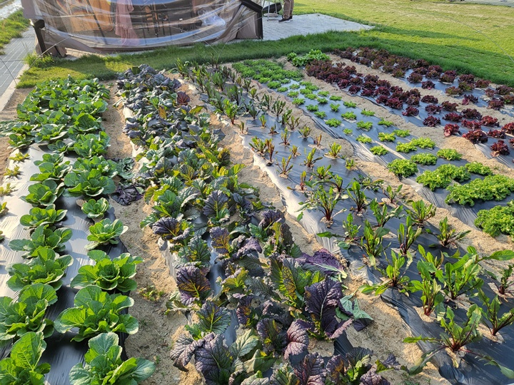 생맥주 사러 몇 번 다녀왔는데 가는 길에 보니 쌈채소는 직접 재배하여 세척, 제공하는 모양이다. 포레스트 파크 잔디광장에 이런 텃밭이 두 곳 정도 있었던 거 같다.