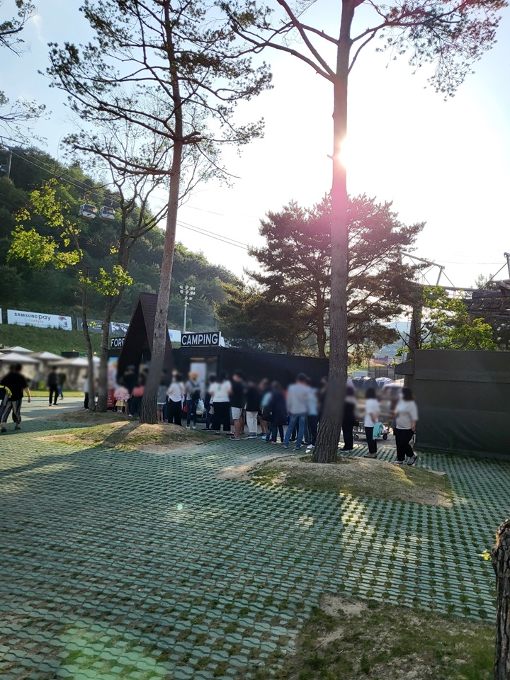 그래서 넉넉하게 20분 전에 객실에서 출발했더니 캠핑장 앞에서 4시 45분쯤 도착했다. 이미 포레스트 캠핑 bbq 이용하려고 줄을 선 분들이 많았다.