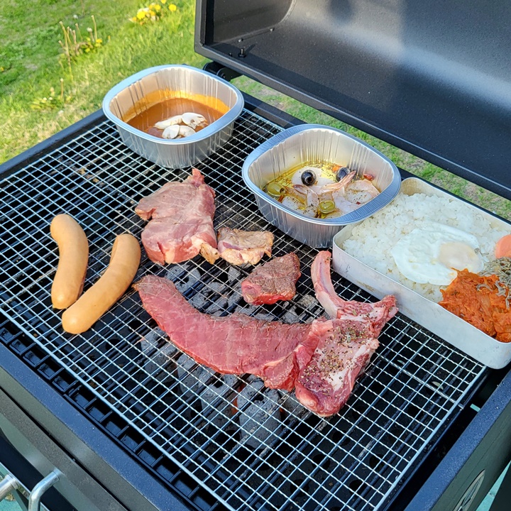 그릴은 동그란 그릴도 있고, 네모난 그릴이 있는 텐트도 있다. 저번에 동그란 그릴 이용해보았기에 이번에는 네모난 그릴을 사용해보고 싶었다.