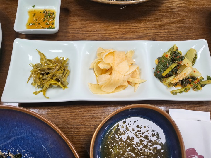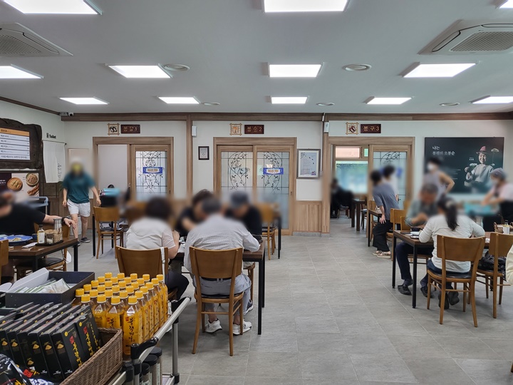 주차장은 한산한 편이라 식당 내부도 붐비지 않을 거라 생각했는데 식당은 이미 (거의) 만석이었다. 겨우 한 자리 남아 있어서 빈자리에 앉았다. 어린아이 동반 손님들은 룸 좌석으로 안내해주시는 것 같고 대부분 자리 나는 대로 앉는 듯했다.