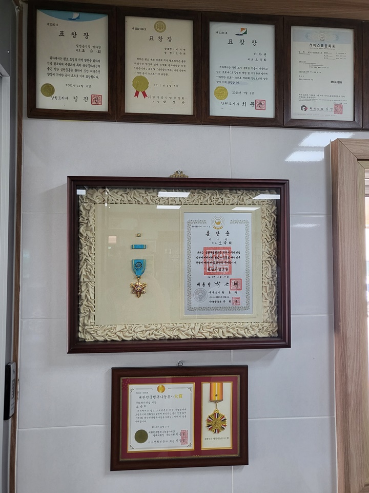 주문하고서 기다리면서 보니 카운터 쪽에도 엄청 많은 표창장과 훈장증이 걸려있다. 내가 만든 메밀요리로, 내가 운영하는 식당 서비스로 이렇게 상장 많이 받는 기분은 어떨지 감히 상상도 못 하겠다.