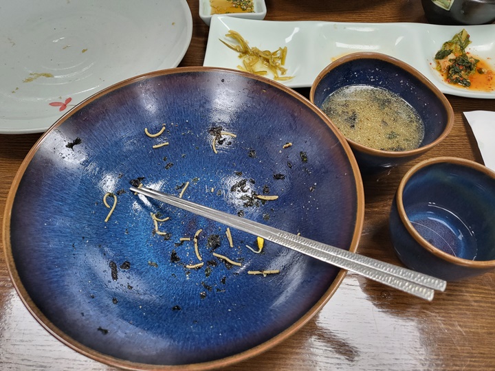 살짝 양을 채우고 4, 9일장이 있는 대화장에 가서 부족한 것은 채워볼 생각이었는데 먹다 보니 안 되겠어서 한 그릇 더 주문하기로 했다. (평창 여행 중이라면 근처 장날 검색해서 구경 다니는 것도 재미있다.)