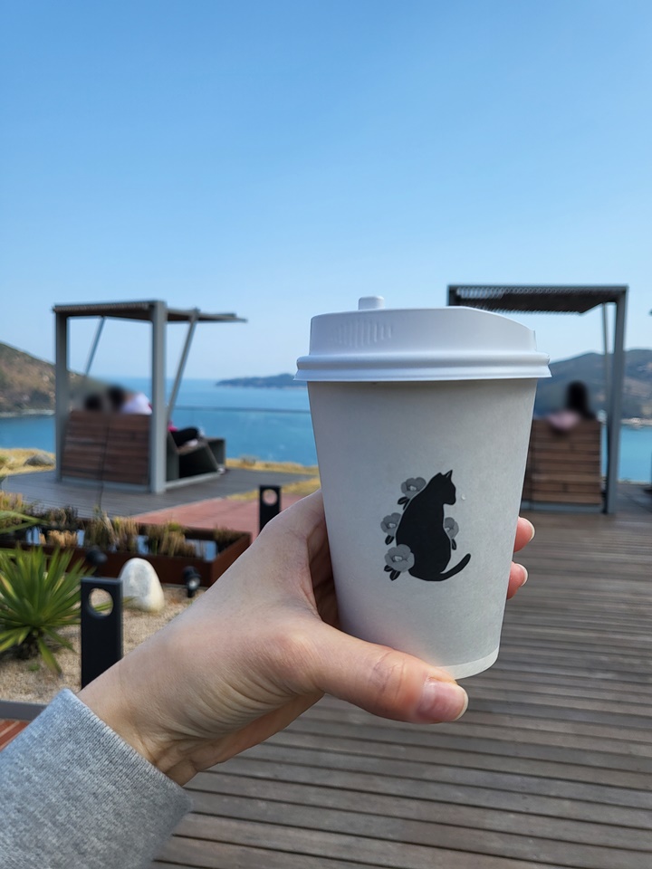 루프탑 (가든)은 유리컵을 가지고는 들어갈 수 없다. 루프탑에서 음료를 즐기고 싶다면 테이크아웃 잔을 선택해야 한다. 또한 여기는 노 키즈존이라 아이는 계단에서 잠시 대기하고, 멋진 지심도 오션뷰를 배경 삼은 마틴커피 고양이컵 인증샷을 찍고 휘리릭 퇴장했다. 음, 다시 마셔보아도 역시 마틴화이트가 내 취향! 다음에 또 거제도 여행을 해도 재방문 의사 200%인 마틴커피 거제 찐후기 끝 :D