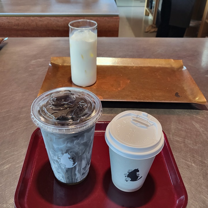 마틴커피 거제 창가 자리는 사진 찍기에는 좋지만, 편하기는 중앙 테이블 소파 자리가 최고다. 주문을 하고 소파에 널브러져 진동벨이 울리기를 기다렸다. 고양이가 그려진 진동벨 다시 봐도 정말 귀엽다 :)