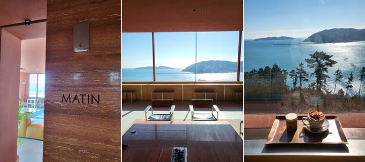 지난겨울 다녀온 마틴커피. 호텔 상상 체크아웃하고 바로 3층으로 올라갔더니 카페가 매우 한산해서 사진 찍기에 좋았다. 뷰맛집 카페답게 가장 인기 있는 자리는 바다 앞 창문 자리이다. 멋진 풍광과 함께 뒷모습 인증샷 찍는 것이 시그니처라고도 할 수 있지만, 매장 내 손님이 많을 경우엔 그러기 쉽지 않다.
