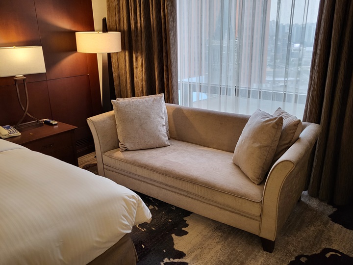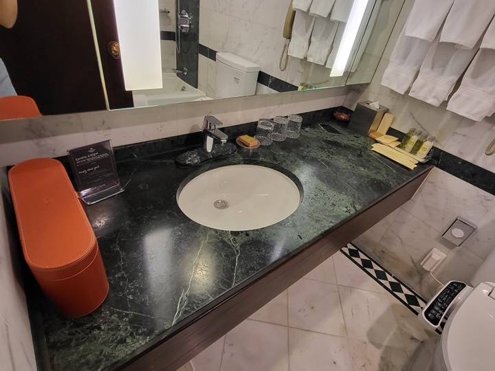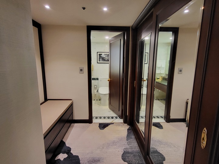 객실 문 안으로 들어섰을 때 오른쪽 공간으로 화장실과 옷장이 있는, 응접실 맞은편 공간이다. 프리미엄 디럭스 룸은 침실과 응접실 쪽이 분리되어 있어서 조금 여유 있게 공간을 쓸 수 있어서 좋았지만, 옆방과 이쪽 공간이 연결되는지 벽간 소음은 취약했다.