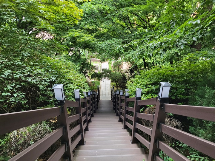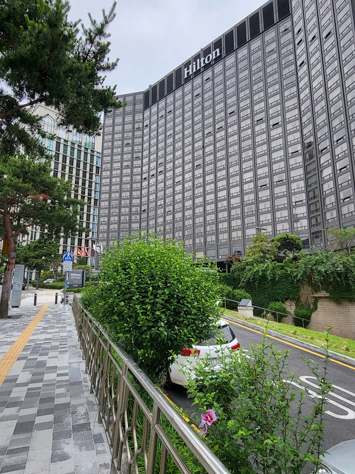 1호선 서울역 8번 출구로 나와서 서울 스퀘어 몰로 들어가 에스컬레이터를 타고 위층으로 올라간다. 양조장이 있는건가 싶었는데 차병원 난임센터가 있었다. 그 사잇길로 나오면 주차장인데 주차장 드랍존으로 올라오면 공원이 나온다. 공원의 가파른 계단을 올라오면 밀레니엄 힐튼 서울 호텔 오크룸 정원이 펼쳐진다. 캐리어 들고 치마 입고 굽 있는 신발 신고 있었는데 올라가느라 현욕터졌ㅎㅎㅎ