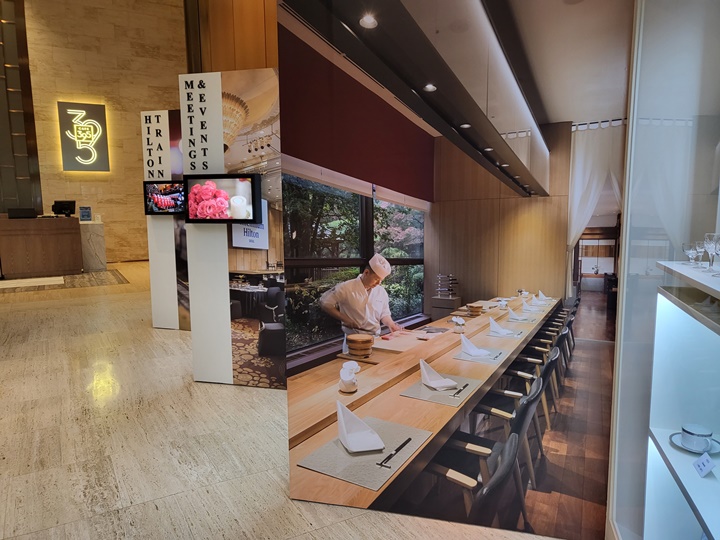밀레니엄 힐튼 체크인한 날 저녁을 구상노사카바에서 스시 오마카세 디너를 배 터지게 먹고 과음을 한 터라 다음날 늦잠을 잤다. 늦게 일어나니 조식 먹을 때 약간 대기를 해야 했다. 대기하면서 찍은 사진으로 카페 365 입구에서 찍었다. 연말이면 부서져 버리기엔 너무 아까운, 고급미 폭발! 올해 연말까지만 영업하고 재개발하게 된다니 아쉬울 따름이다.