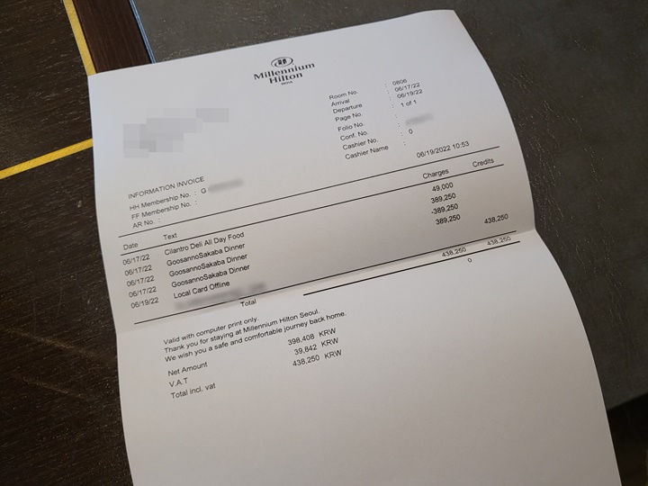 룸 차지로 체크아웃할 때 계산하였는데 힐튼 아너스 골드 멤버로 구상노사카바 스시 오마카세 디너는 25% 할인이 되었지만, 실란트로 델리 망고빙수는 할인 없이 49,000원이 청구되었다. 원래 실란트로 델리에서 자몽 빙수 먹고 싶었던 것을 망빙 비교 욕심에 변경하였던 건데... 다음에 재방문하게 된다면 자몽빙수나 모히또빙수로 재도전해봐야겠다. 밀레니엄 힐튼 호텔 실란트로 델리 망고 빙수 솔직후기 끝 :D