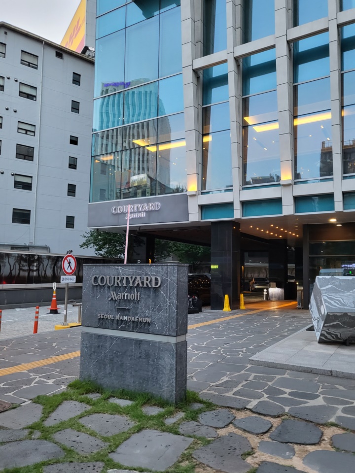 저녁 6시에 예약을 해두어서 밥 먹으러 나가는 길에 찍어본 코트야드 메리어트 서울 남대문 외관, 지난 주말도 굉장히 더웠는데 이 시간 즈음되니까 바람도 좀 선선해졌다. 올해는 얼마나 더우려고 6월 말, 7월 초부터 이렇게 더위가 기승인지... 여름 보양식을 잘 챙겨 먹고 다녀야!!