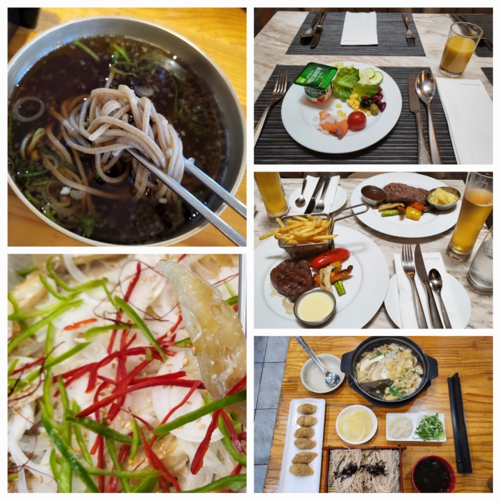 여튼 이렇게 꼴랑 1박 2일 호캉스 하면서- 짐을 맡겼다 찾았다 하면서- 근처 맛집 찾아다니며 먹은 것들은... 시청 유림면 메밀국수, 예전명가 민어찜, 모모카페 조식, 모모카페 안심&등심 스테이크, 북창동 순옥 판메밀이다. 주말에 먹은 것들 대체로 성공적.jpg