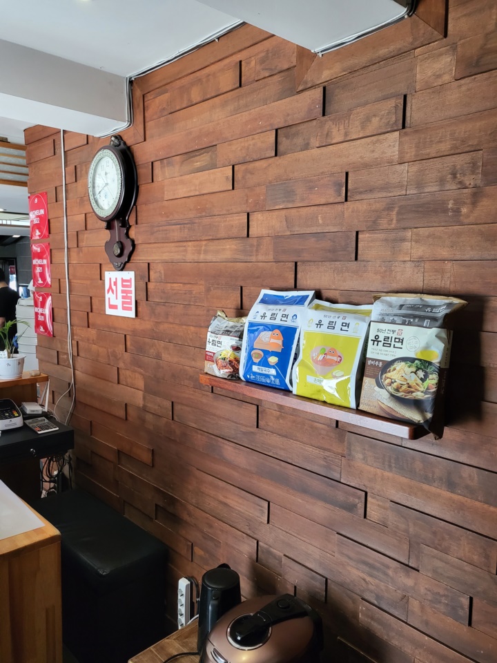 다 먹고 내려오면서 찍은 유림면 1층, 연신 들고나는 손님들로 복잡하다. 벽면에 유림면 포장된 것들을 보니까 시판 제품도 있는 듯. 피코크 유림면 냄비우동 사다가 한번 끓여 먹어봐야겠다. 집에서 먹으면 똑같은 맛은 아니겠으나....