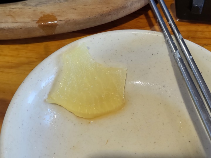 유림면 단무지는 여느 식당 단무지랑은 조금 다르다. 색감도 쨍한 노란빛이 아니고 연다. 크기도 동글동글 예쁜 모양이 아니라 제각각이다. 단무지가 맛있는데, 이게 한 조각이 너무 커서 베어 먹어야 하니까 약간 추잡스럽게 보일 수 있다 ㅎㅎㅎ