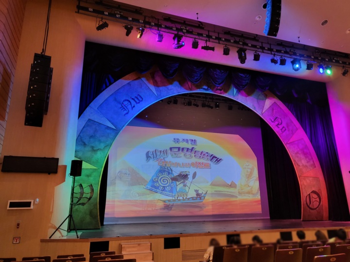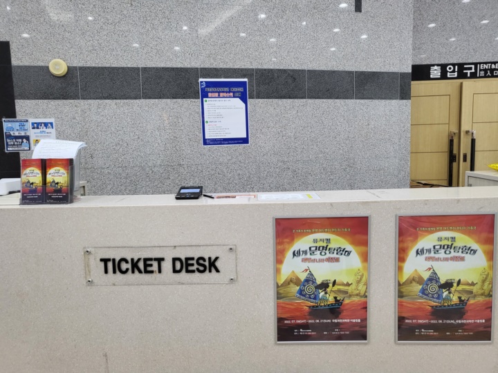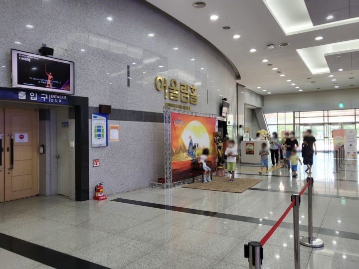 뮤지컬 세계문명탐험대 태양의 나라 이집트 공연 중인 과천과학관 어울림홀, 2시 공연을 예매했는데 1시 15분쯤 도착해서 티켓 수령했다. 평일이어도 여름방학 기간이라 관람객이 많을 줄 알았는데 그리 붐비지는 않았다.