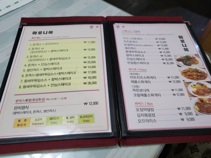 지난 토요일, 일요일 아점 메뉴와 점저 메뉴는 옛날 경양식이었다. 일요일 다녀온 곳은 맛있는 녀석들에 소개되기도 했던 경양식 맛집 안성 마로니에! 어릴 적 먹었던 맛과 분위기가 그대로인 찐 레트로 감성의 경양식집이다. 돈까스를 비롯해 함박스테이크, 오징어덮밥, 런치 정식 등의 메뉴로 30년 이상 명맥을 유지한 백년가게이기도 하다. 안성 서인동 마로니에, 돈까스+오무라이스, 함박스테이크, 오징어덮밥 내돈내산 솔직후기:D