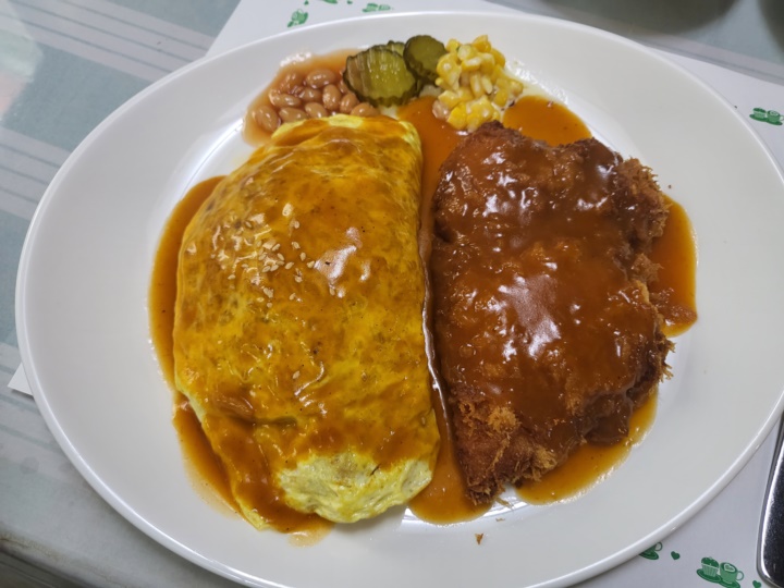 어떤 메뉴 먹어야 할지 고민될 때는 세트메뉴! 마로니에서 돈가스도 먹고 싶고 오므라이스도 먹어보고 싶어서 돈오무 세트를 주문했다. 단품으로 나오는 오무와 돈까스 대비 작은 사이즈이지만 세트 한 접시 먹고 나면 배가 든든!