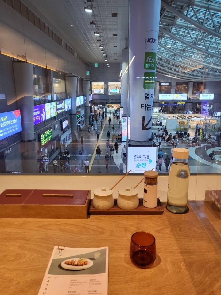 지난번에 왔을 때 보니 이 자리에 앉으면 3층 용산역 광장을 내려다보면서 혼밥 할 수 있을 거 같아서 나만 여기에서 먹고 남편과 아이는 다른 데서 먹으라고 했더니 따라왔다;;;;
