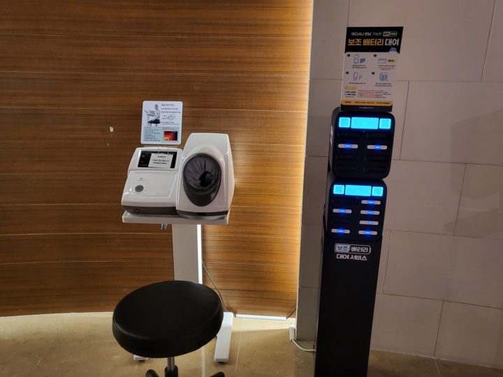 포토존도 있고, 혈압계(현재 사용불가)와 배터리 대여 서비스도 몇 군데 있다.