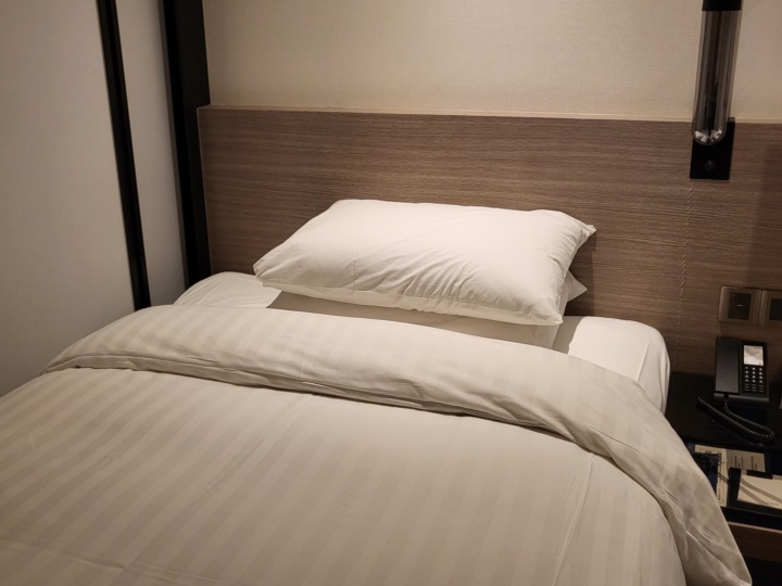 침대 발치로 벽면에 벽걸이 TV가 있는데 이게 옆방의 침대 머리맡이 되는 셈이다. 옆방에서 티브이 크게 틀어놓으면 아주 잘 들리니 음량 조절은 신경 써야 한다. 첫날은 새벽까지 옆방 소리가 너무 크게 울려서 방 바꿔야 하나 싶었는데, 다행히 다음날부터는 조용했다.